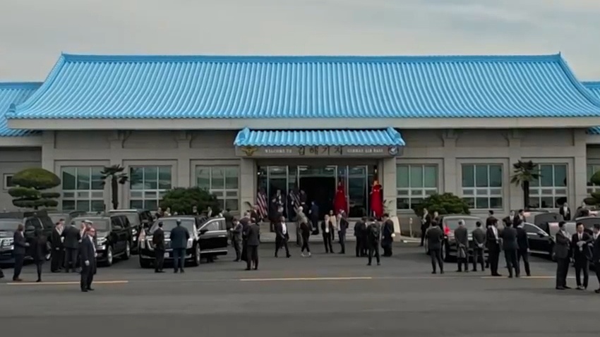 當地時間11月1日下午,韓國總統李在明同中國國家主席習近平在慶州博物館舉行會談。